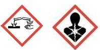 GHS危險性類別:金屬腐蝕物;皮膚腐蝕/刺激,類別1A;嚴重眼損傷/眼睛刺激性,類別2A;呼吸或皮膚過敏,類別1。